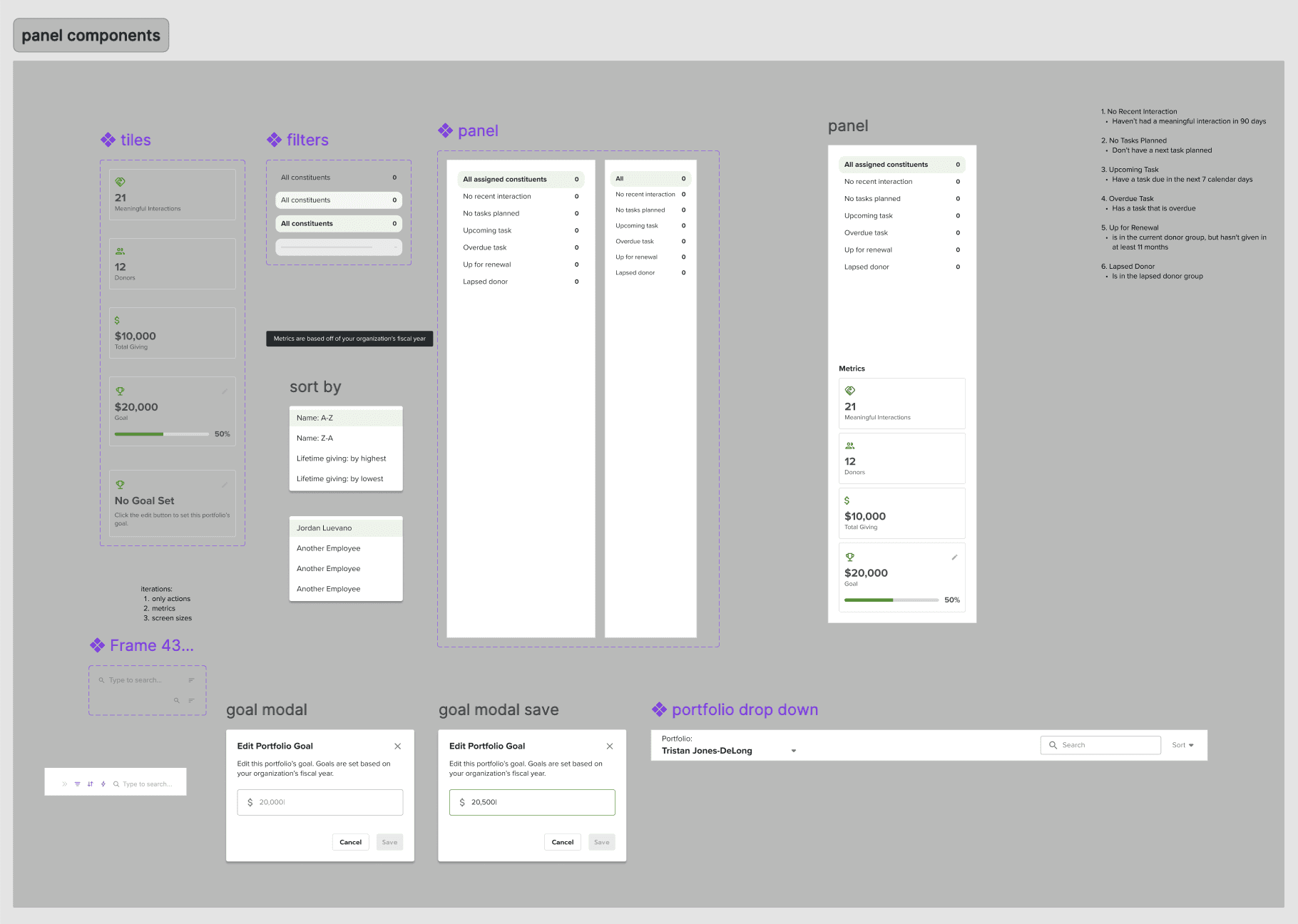 We began by surveying relationship managers to understand their top priorities and pain points. This helped us determine which features were most important for inclusion in the dashboard, including prioritizing tasks, viewing donor engagement metrics, and easily creating new tasks.Prototype Testing